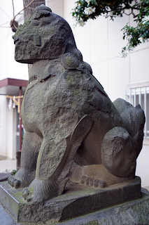 鳥居入ってすぐの狛犬は劣化が激しい。